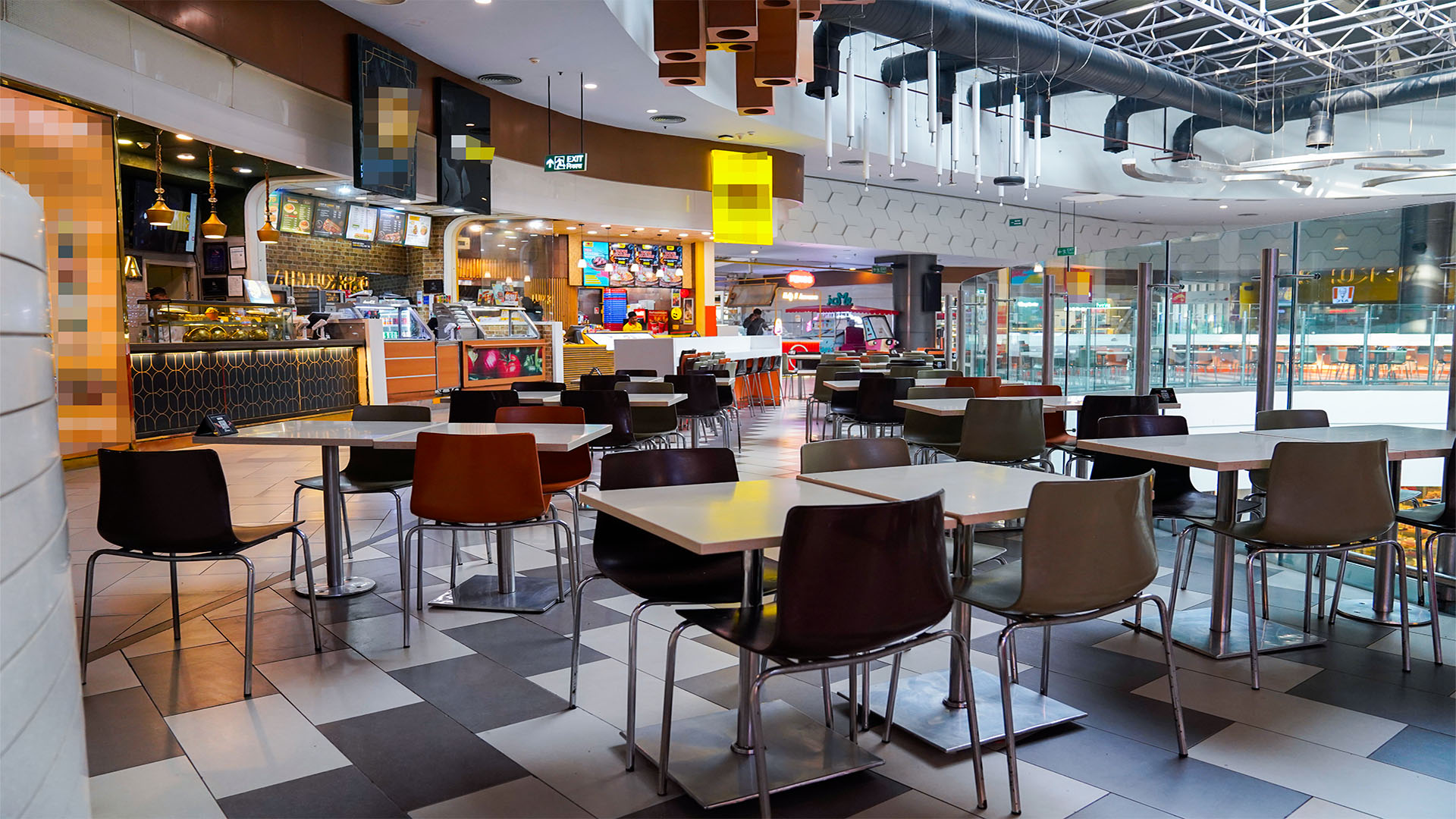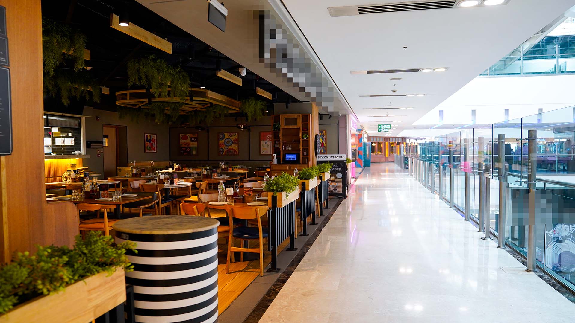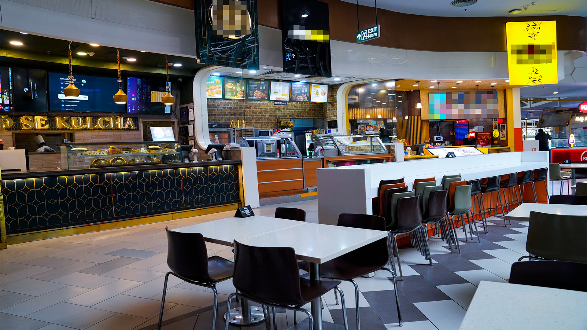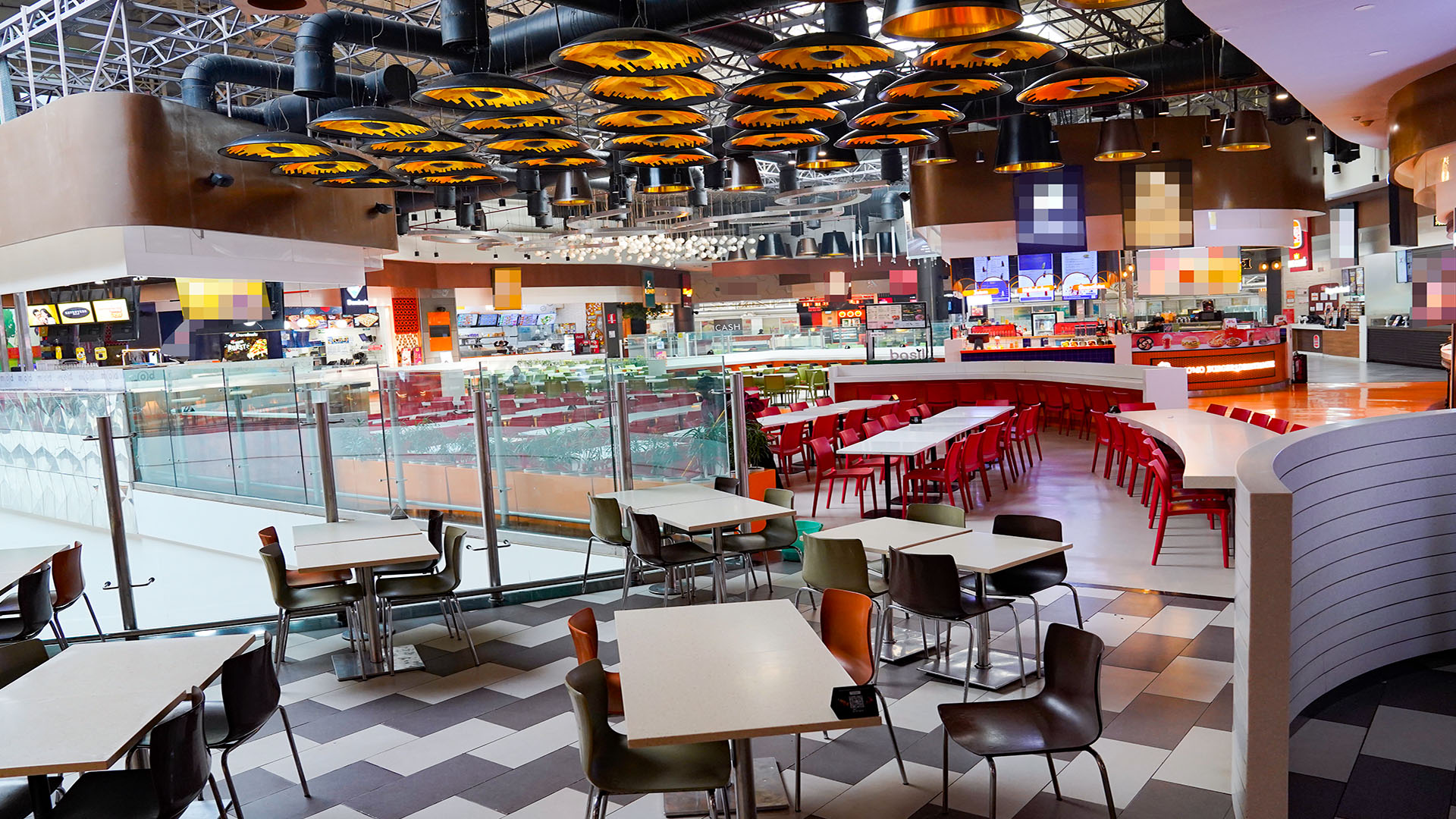 Food court and dining zones provide relatable yet visually refined environments for shoots.