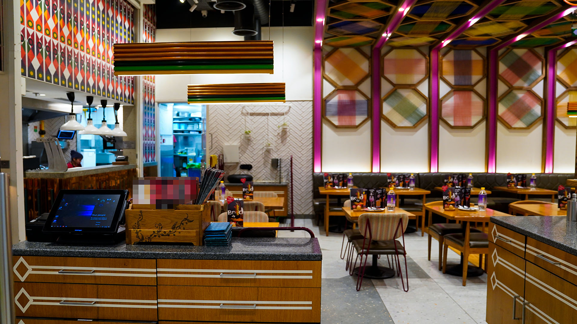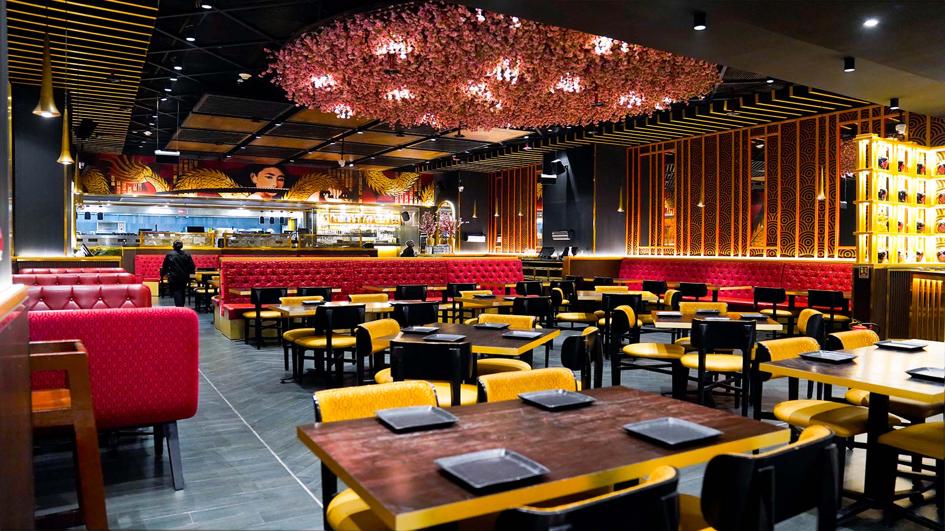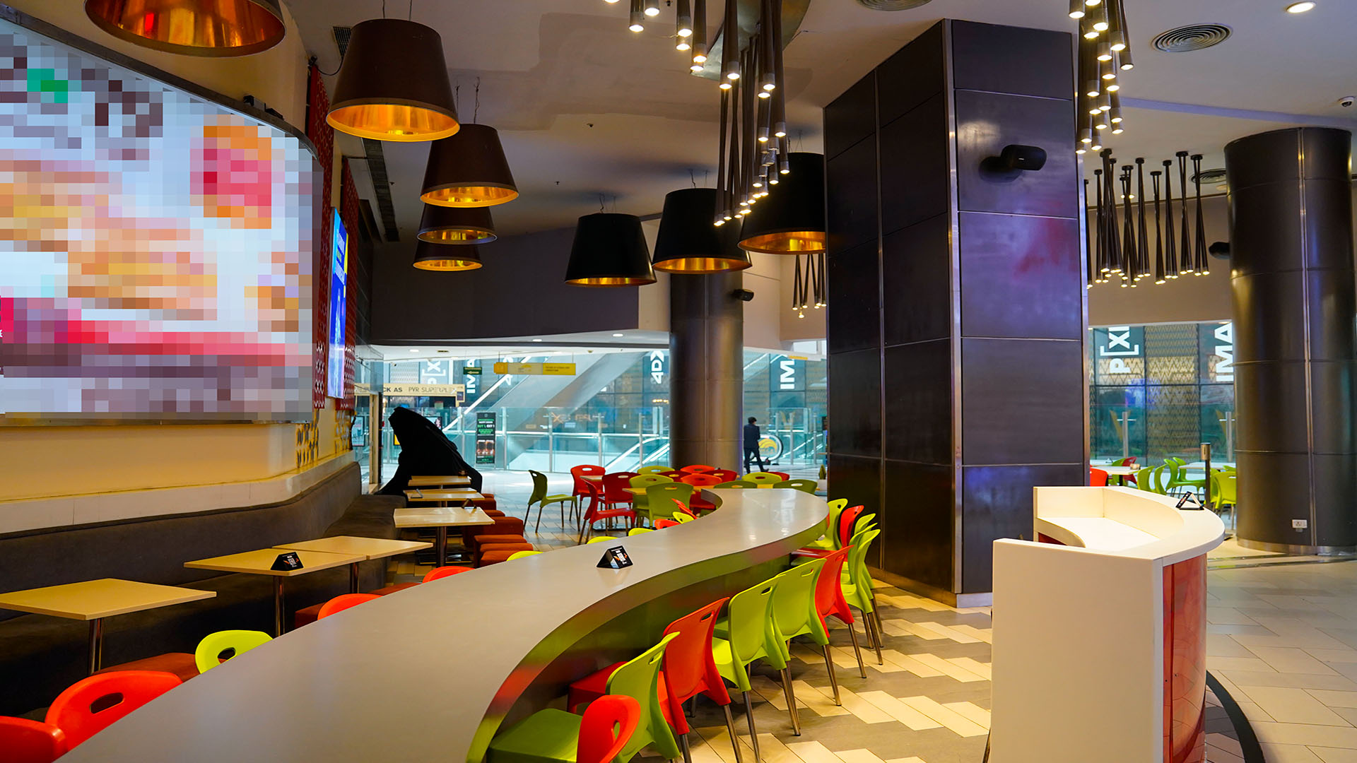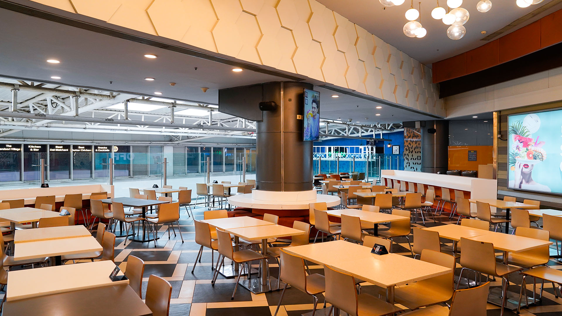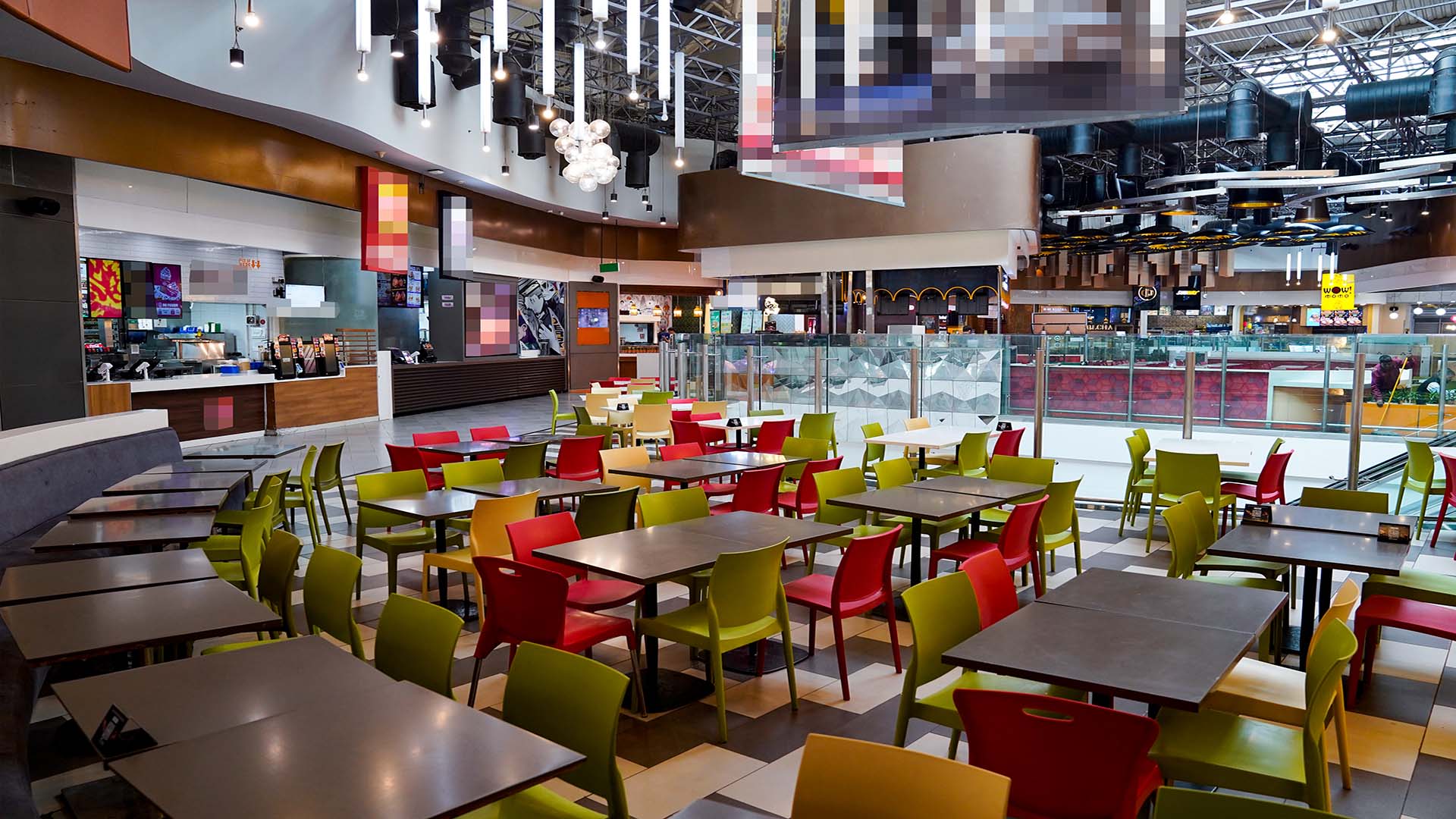 Food court and dining zones provide relatable yet visually refined environments for shoots.